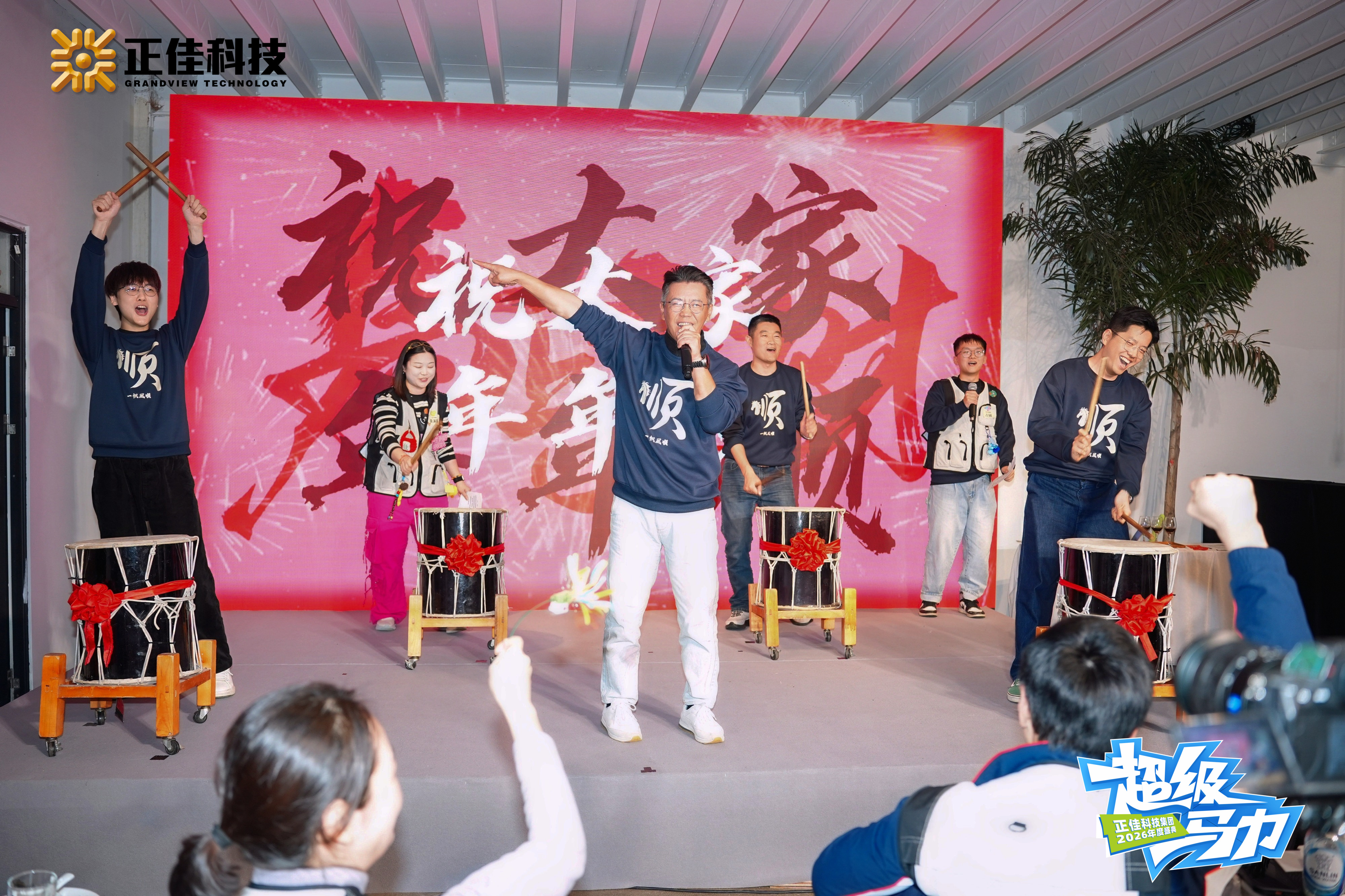 盛典临近尾声。集团领导亲自登台擂鼓,激昂的鼓点铿锵有力、催人奋进,既是对2025年每一位正佳科技人辛勤付出的致敬,也是为2026年全员冲锋吹响的号角。